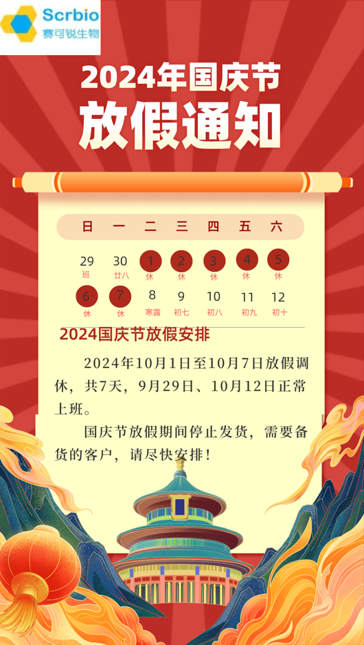 上海賽可銳(Shanghai SCR-Biotech Co., Ltd.)國(guó)慶放假通知
